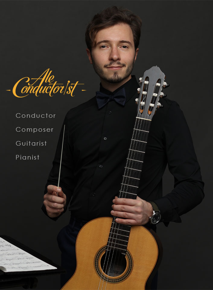 Ale Conductorist, the artistic name of Alessandro Traina, embodies a multifaceted musical journey.From classical guitar to orchestral conducting, composition, and piano, Alessandro seamlessly blends classical traditions with contemporary expression.Through his performances, teaching, and creative projects, he transforms every note into a living, breathing moment of music.